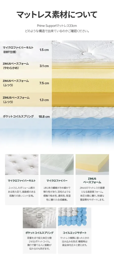 ZINUS Prime Support ハイブリッドマットレス ポケットコイルの基本情報